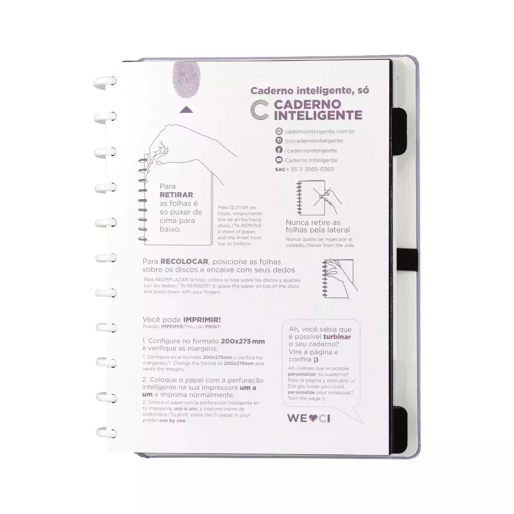 Con el Cuaderno Inteligente Lila Pastel, ¡tú decides! Cambia las tapas, hojas y discos a tu gusto. Cada cuaderno es hecho a mano, lo que significa que cada pieza es única y tiene un carácter especial.